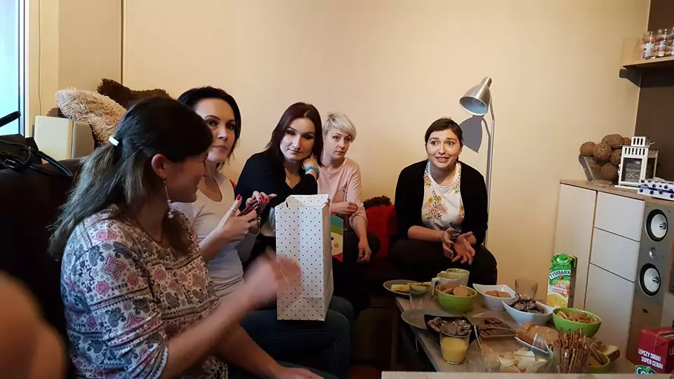 Tym razem było nieco inaczej. Niestety jedna z naszych organizatorek nabawiła się poważnej kontuzji nogi, tak że nie mogła chodzić i nie pojawiłaby się na naszym spotkaniu, gdyby nie spontaniczna decyzja, że wszystkie dziewczyny zrobią wjazd na chatę. I tak też zrobiły. Dziewięć dziewczyn w niedzielne popołudnie zapukało do drzwi mieszkanka w Krakowie, taszcząc ze sobą poczęstunek, soki i wszystko, co miało nam umilić ten czas. Jeśli chodzi o poczęstunek, to wyszła taka mała wigilia. Usiadłyśmy przy złączonych stołach. Wszystkie uśmiechnięte od ucha do ucha, bo tego jeszcze nie było!
