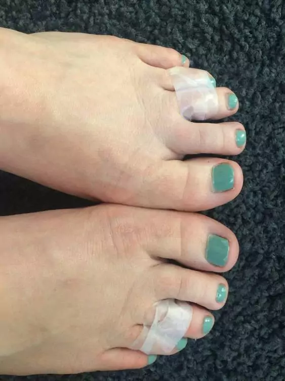 Czwarty trik, którego nie stosowałam osobiście, ale jestem go bardzo ciekawa to sklejenie 3 i 4 małego palca taśmą. Podobno między tymi dwoma palcami biegnie nerw, który jest mocno podrażniony podczas chodzenia w czółenkach na wysokim obcasie. To on odpowiada za to charakterystyczne pieczenie stopy. Po złączeniu tych dwóch palców nerw ten jest w jakiś sposób zakamuflowany, dzięki czemu możemy w butach wytrzymać znacznie dłużej. Ciekawa jestem bardzo tej porady i nie omieszkam z niej skorzystać przy następnej okazji.